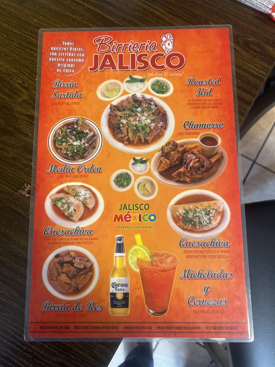 Introducing BIRRIERIA JALISCO LYNWOOD, a culinary gem nestled in Lynwood, California. This authentic eatery specializes in savory birria, earning rave reviews for its rich flavors and welcoming atmosphere. The menu showcases delicious soups such as Goat Stew and Beef Soup, with prices starting at just $8.99. Their specialties include marinated carne asada and sizzling fajitas, each dish reflecting the essence of Jalisco's cuisine.